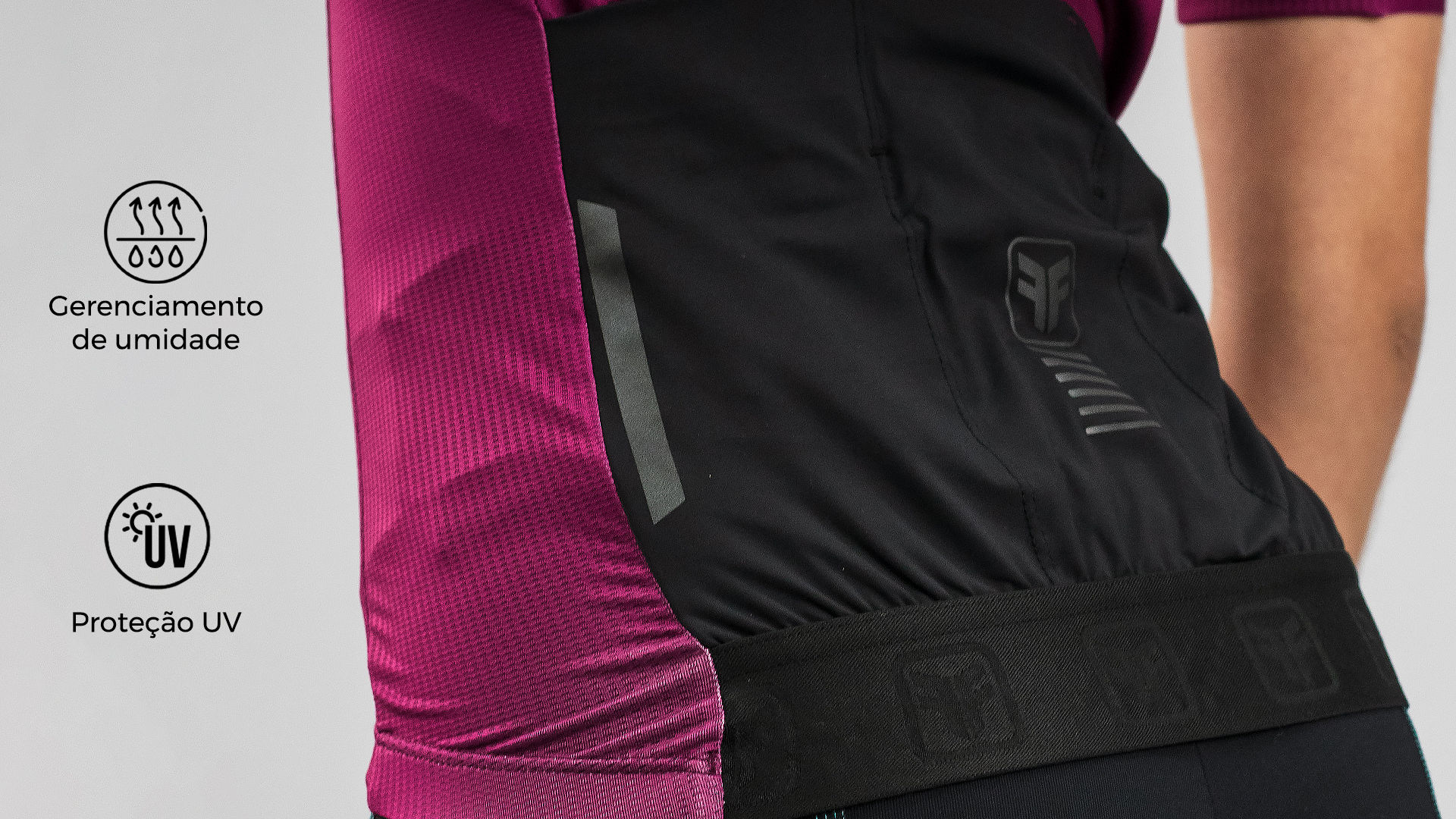 Segurança: Alguns tecidos oferecem proteção contra raios UV, e o ajuste adequado evita que a roupa enrosque na bicicleta.