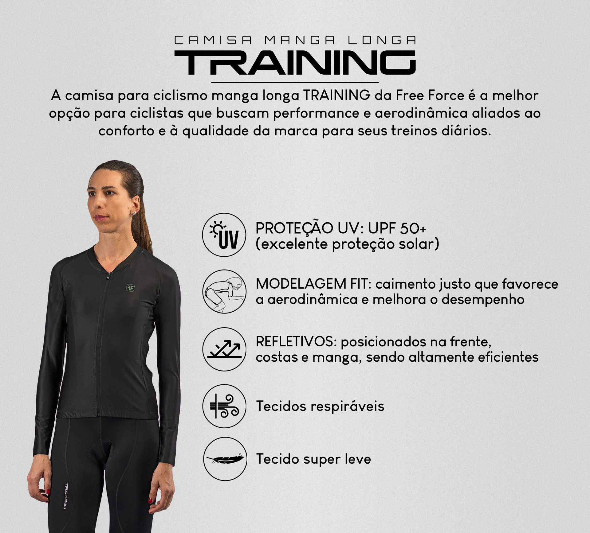 Seja para treinos intensos, provas ou pedais noturnos, a Camisa de Ciclismo Training Manga Longa oferece a combinação perfeita entre tecnologia, conforto e aerodinâmica.