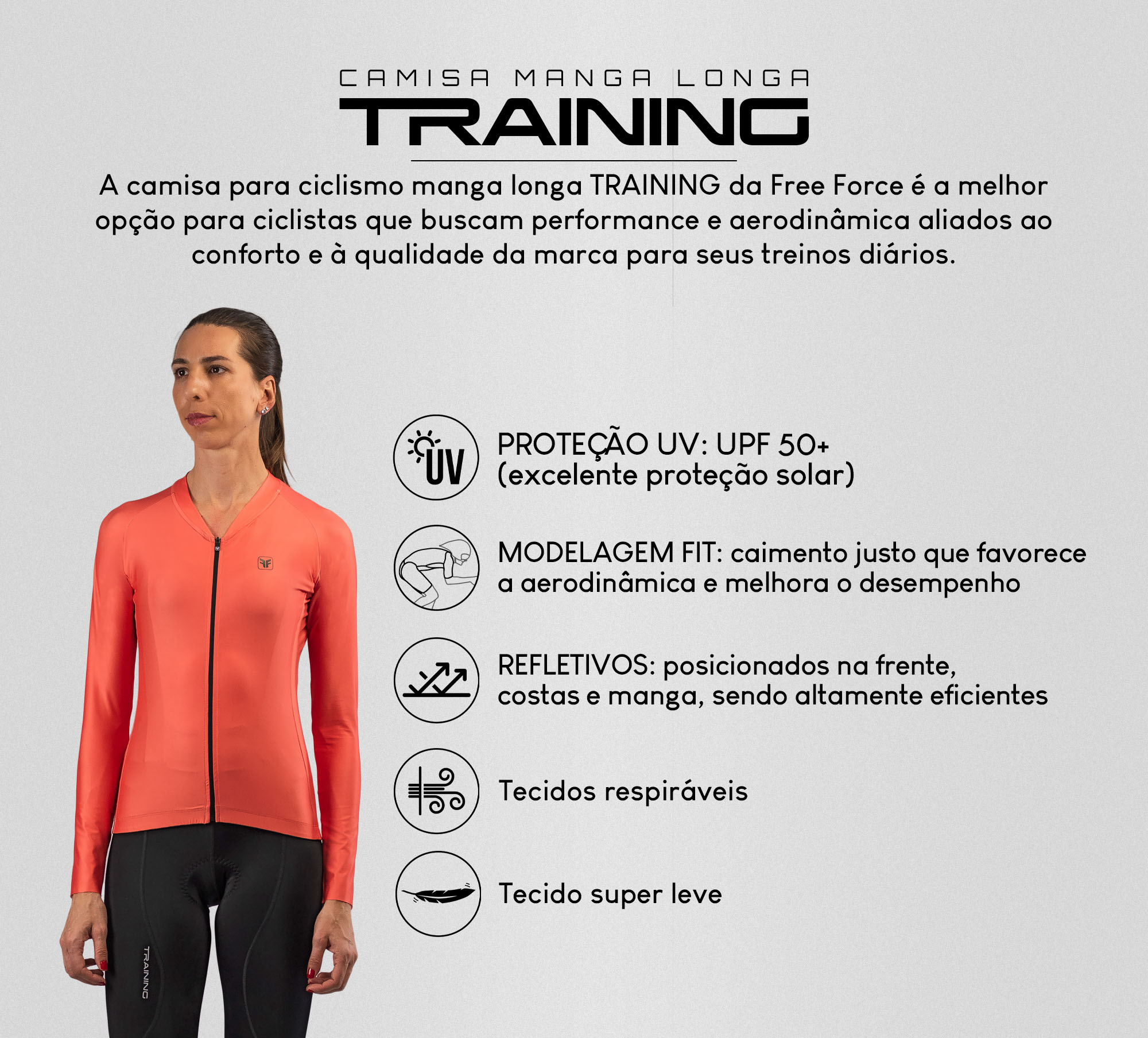 Seja para treinos intensos, provas ou pedais noturnos, a Camisa de Ciclismo Training Manga Longa oferece a combinação perfeita entre tecnologia, conforto e aerodinâmica.
