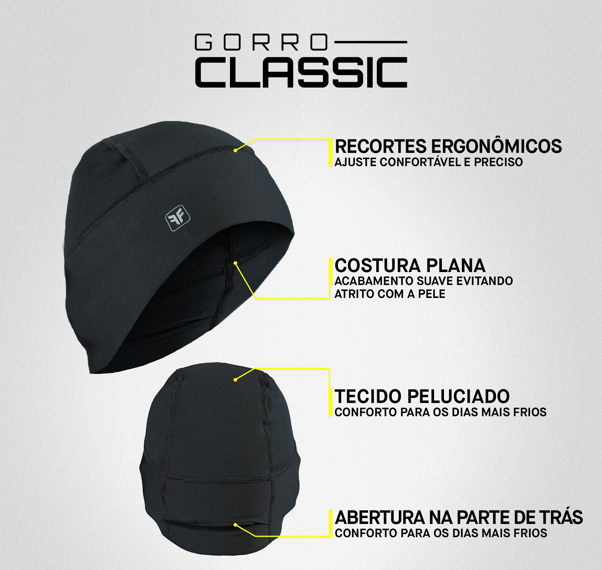 | Tecido | O nosso gorro térmico é composto por 91% poliéster / 9% elastano, além disso auxilia na transpiração e traz conforto térmico. |